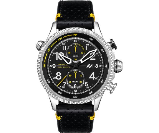 quartz movement (with battery) that, as is usual for AVI-8 watches, guarantees precise timekeeping and provides the following functions: Chronograph, Date, Minute, Second, Hour.