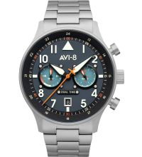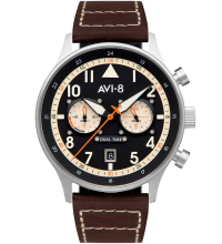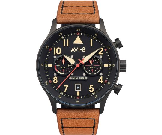 quartz movement (with battery) that, as is usual for AVI-8 watches, guarantees precise timekeeping and provides the following functions: Date, Minute, Second, Hour, 2 timezones.