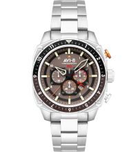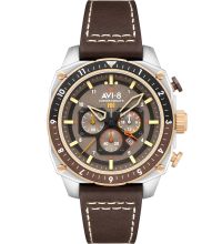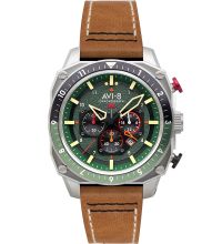 quartz movement (with battery) that, as is usual for AVI-8 watches, guarantees precise timekeeping and provides the following functions: Hour, Minute, Second, Date, Chronograph, 2 timezones, 24-hours.