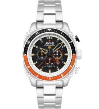 from the model series Hawker Hunter Dual Time Chronograph 43mm 5ATM. The GMT function for displaying a second time zone is easy to read using the arrow-shaped and color-highlighted second hour hand. This means you can always keep an eye on your home time and local time. A perfect choice if you are looking for a timepiece with