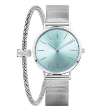 The Round case is 34 mm wide and 6 mm height and, depending on individual taste, will adorn almost any wrist. The bezel, which is Fixed, stands out discreetly from the case. The case back of the watch is a Stainless steel bottom, pressed, which sets the final point for a coherent design.