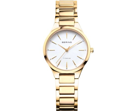 The high-quality Titanium bracelet - colour: Gold - with Folding clasp will give you additional pleasure with your new Bering watch. The Titanium bracelet offers a high level of wearing comfort and can be worn up to a maximum wrist circumference of 195 mm.