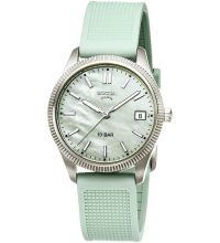 The Mineral glass, hardened offers extensive protection against accidental scratches and damage. Underneath, the dial of your new dream watch is Green, Mother of pearl.