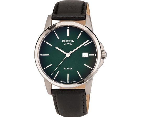 quartz movement (with battery) that, as is usual for Boccia watches, guarantees precise timekeeping and provides the following functions: Date, Minute, Second, Hour.