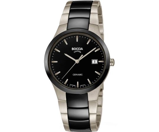 The high-quality Ceramic, Titanium bracelet - colour: Black, Silver - with Folding clasp will give you additional pleasure with your new Boccia watch. The Ceramic, Titanium bracelet offers a high level of wearing comfort and can be worn up to a maximum wrist circumference of 205 mm.