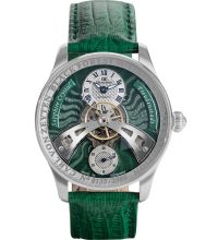 The Round case is 42 mm wide and 14 mm height and, depending on individual taste, will adorn almost any wrist. The bezel, which is Fixed, stands out discreetly from the case. The case back of the watch is a Glas bottom, screwed, which sets the final point for a coherent design.