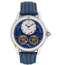 The Round case is 46 mm wide and 14 mm height and, depending on individual taste, will adorn almost any wrist. The bezel, which is Fixed, stands out discreetly from the case. The case back of the watch is a Glas bottom, screwed, which sets the final point for a coherent design.