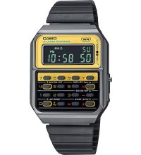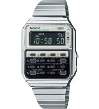 quartz movement (with battery) that, as is usual for Casio watches, guarantees precise timekeeping and provides the following functions: Hour, Minute, Second, 12-24 h, Alarm, Day, Month, Year, Date, Automatic calender, Calculator, Stop function.