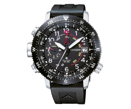 solar movement (quartz) that, as is usual for Citizen watches, guarantees precise timekeeping and provides the following functions: Date, Altimeter, cold resistant, Compass, Powerreserve, Minute, Second, Solar, Hour.