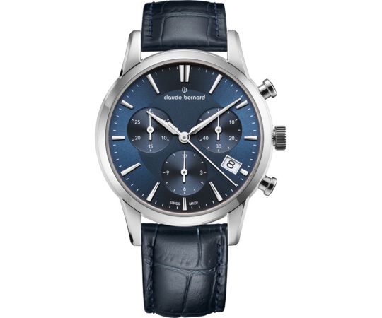 quartz movement (with battery) that, as is usual for Claude Bernard watches, guarantees precise timekeeping and provides the following functions: Hour, Minute, Second, Date, Chronograph.