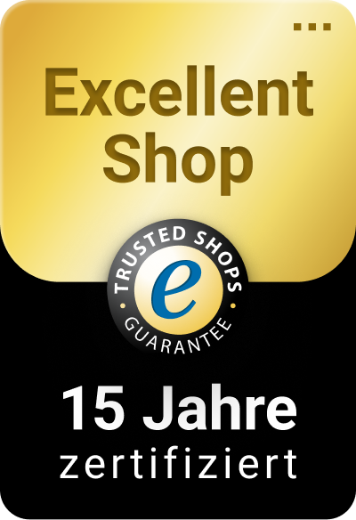 Since 2023 awarded with the Trusted Shops "Excellent Shop Award" for 15 years of best service and real security.