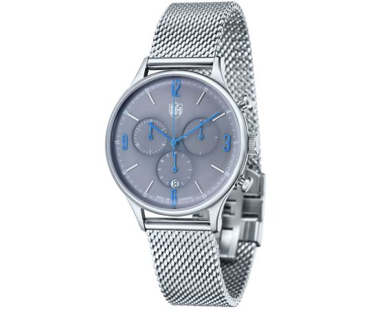 quartz movement (with battery) that, as is usual for DuFa watches, guarantees precise timekeeping and provides the following functions: Chronograph, Date, Minute, Second, Hour.
