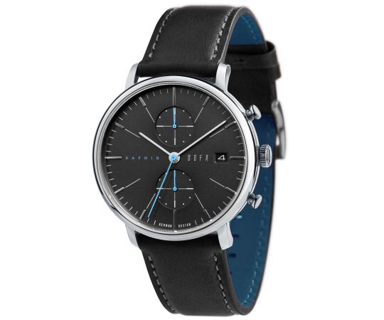 quartz movement (with battery) that, as is usual for DuFa watches, guarantees precise timekeeping and provides the following functions: Chronograph, Date, Minute, Second, Hour.