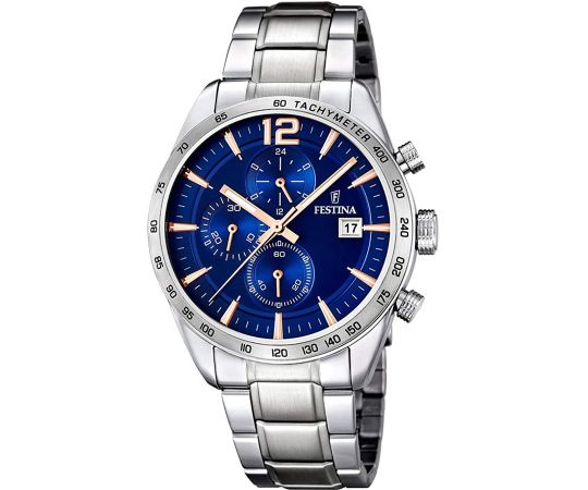 quartz movement (with battery) that, as is usual for Festina watches, guarantees precise timekeeping and provides the following functions: 24-hours, Chronograph, Date, Minute, Second, Hour.