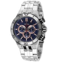 The Round case is 45 mm wide and 14 mm height and, depending on individual taste, will adorn almost any wrist. The bezel, which is Fixed, stands out discreetly from the case. The case back of the watch is a Stainless steel bottom, screwed, which sets the final point for a coherent design.