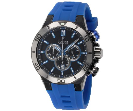 quartz movement (with battery) that, as is usual for Festina watches, guarantees precise timekeeping and provides the following functions: Chronograph, Date, Minute, Second, Hour.