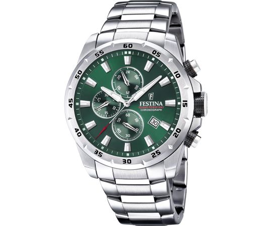 quartz movement (with battery) that, as is usual for Festina watches, guarantees precise timekeeping and provides the following functions: 24-hours, Chronograph, Date, Minute, Second, Hour.