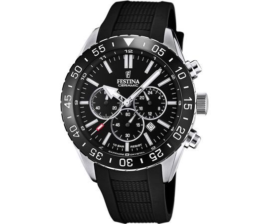 quartz movement (with battery) that, as is usual for Festina watches, guarantees precise timekeeping and provides the following functions: 24-hours, Chronograph, Date, Minute, Second, Hour.