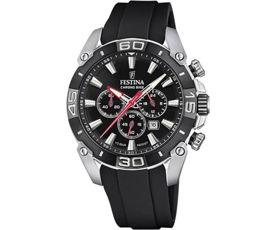 quartz movement (with battery) that, as is usual for Festina watches, guarantees precise timekeeping and provides the following functions: 24-hours, Chronograph, Date, Minute, Second, Hour.