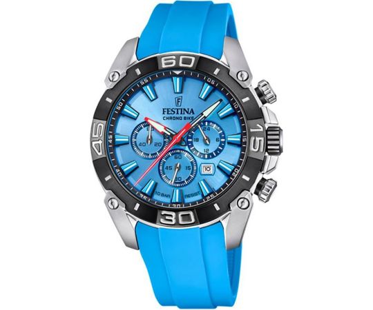 quartz movement (with battery) that, as is usual for Festina watches, guarantees precise timekeeping and provides the following functions: 24-hours, Chronograph, Date, Minute, Second, Hour.