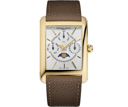 quartz movement (with battery) that, as is usual for Frederique Constant watches, guarantees precise timekeeping and provides the following functions: Hour, Minute, Second, Date, Day, Month, Full calendar, Moon phase.