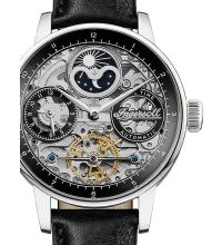 The Round case is 42 mm wide and 15 mm height and, depending on individual taste, will adorn almost any wrist. The bezel, which is Fixed, stands out discreetly from the case. The case back of the watch is a Glas bottom, screwed, which sets the final point for a coherent design.