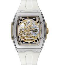 The Barrel case is 45 mm wide and 14 mm height and, depending on individual taste, will adorn almost any wrist. The bezel, which is Fixed, stands out discreetly from the case. The case back of the watch is a Glas bottom, screwed, which sets the final point for a coherent design.