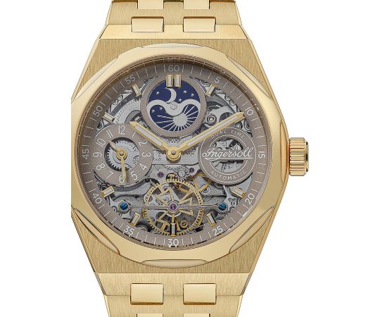 automatic movement that, as is usual for Ingersoll watches, guarantees precise timekeeping and provides the following functions: Minute, Moon phase, Hour, 2 timezones.