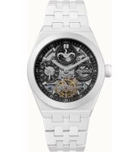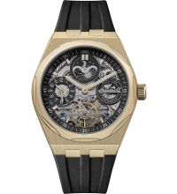 The Round case is 43 mm wide and 15 mm height and, depending on individual taste, will adorn almost any wrist. The bezel, which is Fixed, stands out discreetly from the case. The case back of the watch is a Glas bottom, screwed, which sets the final point for a coherent design.