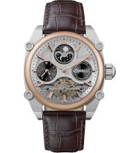 The Round case is 45 mm wide and 15 mm height and, depending on individual taste, will adorn almost any wrist. The bezel, which is Fixed, stands out discreetly from the case. The case back of the watch is a Glas bottom, screwed, which sets the final point for a coherent design.
