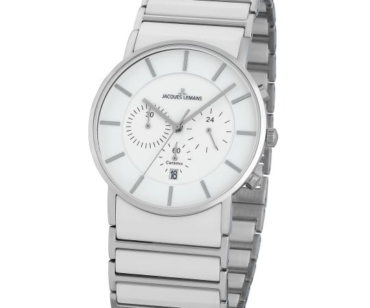 The high-quality Stainless steel, Ceramic bracelet - colour: white - with Folding clasp will give you additional pleasure with your new Jacques Lemans watch. The Stainless steel, Ceramic bracelet offers a high level of wearing comfort and can be worn up to a maximum wrist circumference of 210 mm.