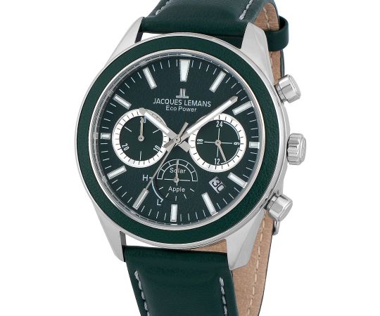 solar movement (quartz) that, as is usual for Jacques Lemans watches, guarantees precise timekeeping and provides the following functions: 24-hours, Chronograph, Date, Minute, Second, Hour.