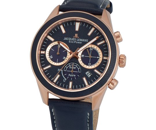solar movement (quartz) that, as is usual for Jacques Lemans watches, guarantees precise timekeeping and provides the following functions: 24-hours, Chronograph, Date, Minute, Second, Hour.