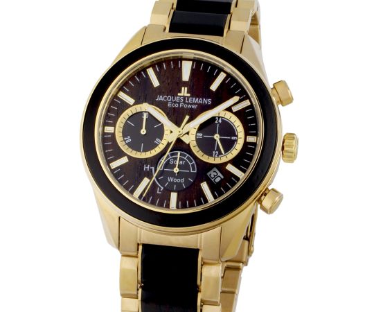 The high-quality Stainless steel, Wood bracelet - colour: Brown, Gold - with Folding clasp will give you additional pleasure with your new Jacques Lemans watch. The Stainless steel, Wood bracelet offers a high level of wearing comfort and can be worn up to a maximum wrist circumference of 190 mm.
