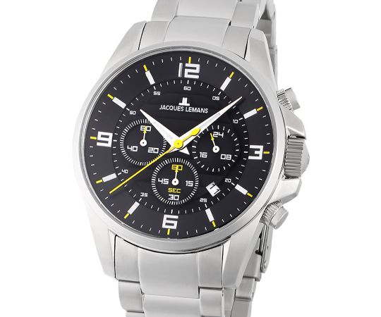quartz movement (with battery) that, as is usual for Jacques Lemans watches, guarantees precise timekeeping and provides the following functions: Hour, Minute, Second, Chronograph, Date.