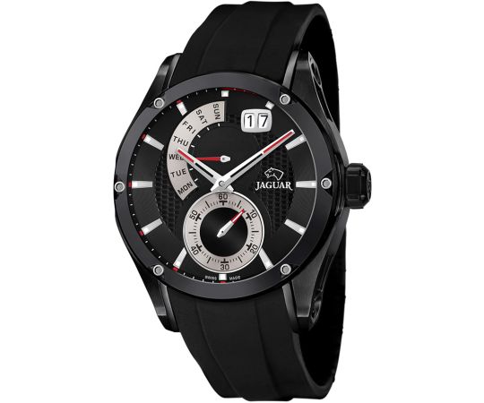 quartz movement (with battery) that, as is usual for Jaguar watches, guarantees precise timekeeping and provides the following functions: Date, Minute, Second, Hour, Day.