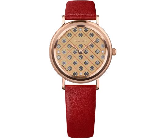 The Round case is 31 mm wide and 6 mm height and, depending on individual taste, will adorn almost any wrist. The bezel, which is Fixed, stands out discreetly from the case. The case back of the watch is a Stainless steel bottom, pressed, which sets the final point for a coherent design.