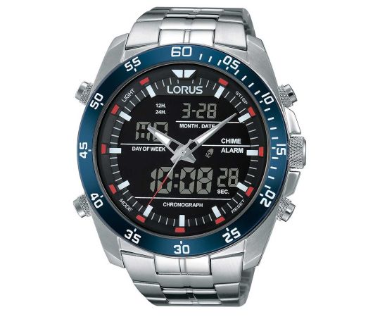 quartz movement (with battery) that, as is usual for Lorus watches, guarantees precise timekeeping and provides the following functions: Alarm, Chronograph, Date, Minute, Second, Hour, Day.