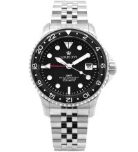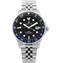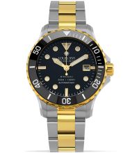 The Round case is 41 mm wide and 13 mm height and, depending on individual taste, will adorn almost any wrist. The bezel, which is Turnable, counterclockwise, stands out discreetly from the case, as does the Screwed crown. The case back of the watch is a Stainless steel bottom, screwed, which sets the final point for a coherent design.