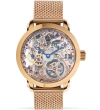 The Round case is 43 mm wide and 12 mm height and, depending on individual taste, will adorn almost any wrist. The bezel, which is Fixed, stands out discreetly from the case. The case back of the watch is a Stainless steel bottom, screwed, which sets the final point for a coherent design.