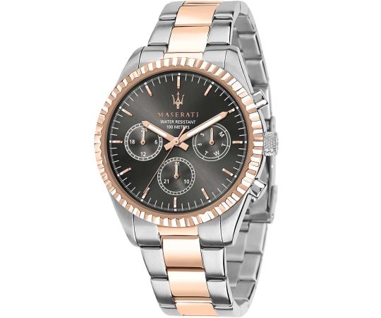 The high-quality Stainless steel bracelet - colour: Rosé gold, Silver - with Folding clasp will give you additional pleasure with your new Maserati watch. The Stainless steel bracelet offers a high level of wearing comfort and can be worn up to a maximum wrist circumference of 210 mm.