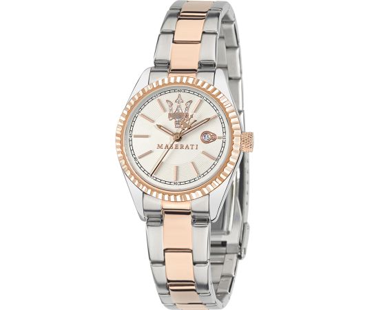 The high-quality Stainless steel bracelet - colour: Rosé gold, Silver - with Folding clasp will give you additional pleasure with your new Maserati watch. The Stainless steel bracelet offers a high level of wearing comfort and can be worn up to a maximum wrist circumference of 190 mm.