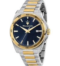 The high-quality Stainless steel bracelet - colour: Silver, Gold - with Folding clasp will give you additional pleasure with your new Maserati watch. The Stainless steel bracelet offers a high level of wearing comfort and can be worn up to a maximum wrist circumference of 220 mm.