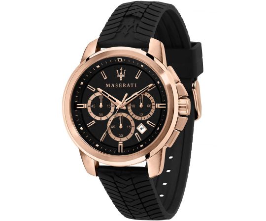 quartz movement (with battery) that, as is usual for Maserati watches, guarantees precise timekeeping and provides the following functions: 24-hours, Chronograph, Date, Minute, Second, Hour.