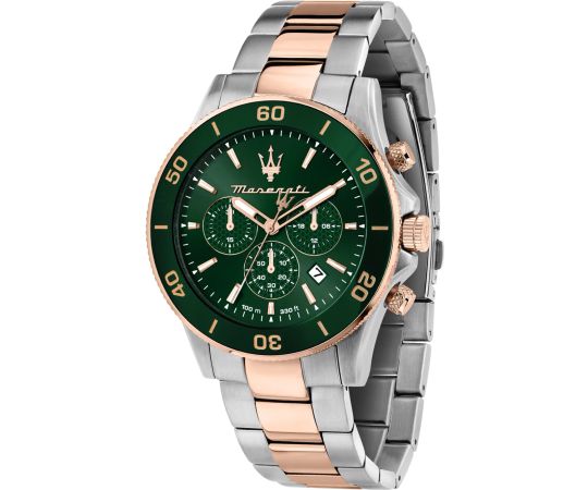 The high-quality Stainless steel bracelet - colour: Silver, Rosé gold - with Folding clasp will give you additional pleasure with your new Maserati watch. The Stainless steel bracelet offers a high level of wearing comfort and can be worn up to a maximum wrist circumference of 205 mm.