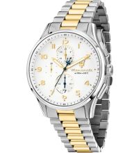 The high-quality Stainless steel bracelet - colour: Silver, Gold - with Folding clasp will give you additional pleasure with your new Maserati watch. The Stainless steel bracelet offers a high level of wearing comfort and can be worn up to a maximum wrist circumference of 215 mm.