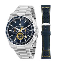quartz movement (with battery) that, as is usual for Maserati watches, guarantees precise timekeeping and provides the following functions: Hour, Minute, Second, Date, Chronograph, 24-hours, Tachymeter.
