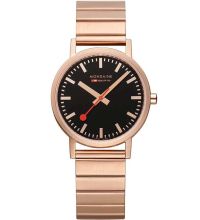 The high-quality Stainless steel bracelet - colour: Rosé gold - with Clip clasp will give you additional pleasure with your new Mondaine watch. The Stainless steel bracelet offers a high level of wearing comfort and can be worn up to a maximum wrist circumference of 180 mm.