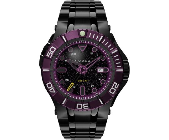automatic movement that, as is usual for Nubeo watches, guarantees precise timekeeping and provides the following functions: Hour, Minute, Second, Date, Helium valve.