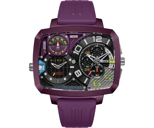 quartz movement (with battery) that, as is usual for Nubeo watches, guarantees precise timekeeping and provides the following functions: Hour, Minute, Second, Date, Chronograph, 3 timezone.